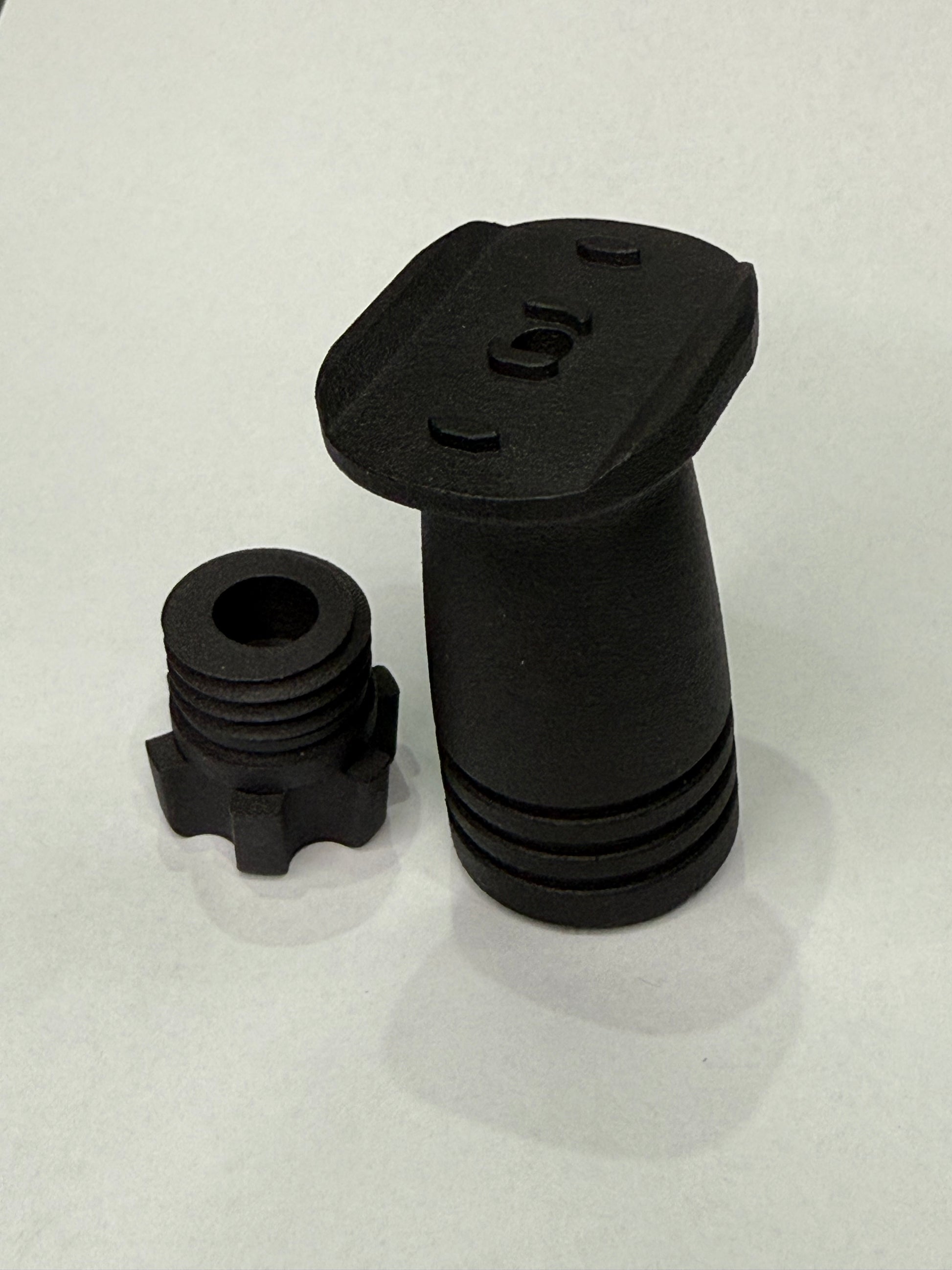 A short vertical foregrip loosely based on the widely acclaimed "broomstick" by knights armament. Made from high strength PA12 nylon polymer, this is not just a regular home made 3D printed grip. Manufactured with high precision industrial selective laser sintering. Designed for maximum ergonomy and strength. The inside cavity can fit a CR123 battery.